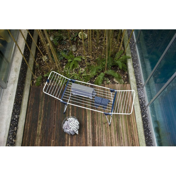 Сталеві елементи конструкції мають антикорозійне покриття. Одна з опорних стійок обладнана роликовим механізмом, завдяки якому переміщення всієї конструкції житловим приміщенням стало надзвичайно легким і максимально безпечним по відношенню до поверхні підлоги. Робочі напрямні збільшеного діаметра не залишають смуги на білизні у процесі сушіння. Надійна та практична, виготовленаз екологічно чистих матеріалів, сушарка для білизни Gimi Genio стане надійним помічником, як у приватному будинку, так і в квартирі.