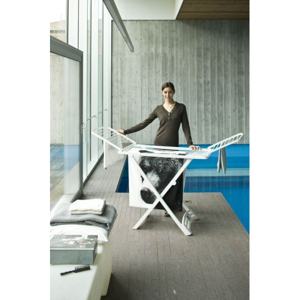 Сушарка для білизни підлогова Gimi Grafite (154785) - надійна та проста конструкція виготовлена з легкого й одночасно міцного термопластику. Модель обладнана системою, що запобігає випадковому закриттю, фіксація відбувається за допомогою кнопки на опорній стійці. Збільшений діаметр напрямних оберігає білизну від зминання під час сушіння. Для додаткового комфорту та безпечного переміщення модель має вбудовані роликові механізми в опорній стійці.