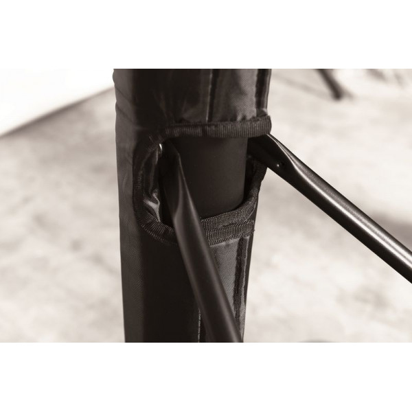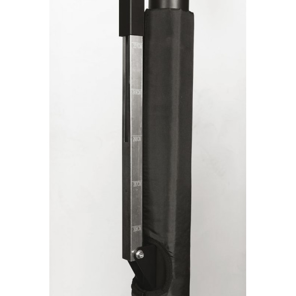 - Вертикальна конструкція з регульованою висотою, зі сталевої телескопічної труби Ø60 мм і армуючих кріплень, покрита порошковою фарбою чорного кольору.