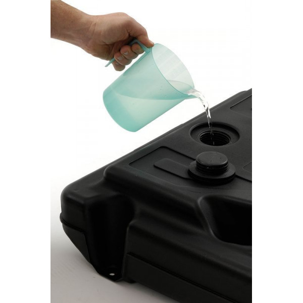 - Основа з чорного формованого поліетилену, оснащена колесами спереду, її можна наповнити водою або піском для забезпечення стійкості під час гри.