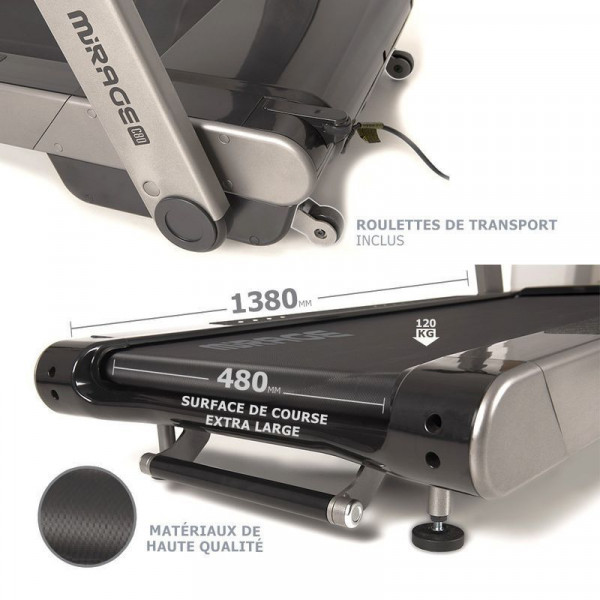 Бігова доріжка Toorx MIRAGE-C80 (MIRAGE-C80) поєднує в собі потужність, функціональність та зручність для домашнього використання. Ця модель забезпечує високий рівень комфорту тренувань завдяки передовим технологіям амортизації, розширеному вибору програм та мультимедійним можливостям. Бігова доріжка оснащена інтуїтивною консоллю з LED-дисплеєм, що дозволяє легко контролювати основні показники вашого тренування. Однією з ключових переваг є наявність бездротового нагрудного кардіопередатчика, який входить до комплекту, забезпечуючи точний моніторинг пульсу. Надійна конструкція дозволяє витримувати вагу користувача до 120 кг, а складана система з транспортувальними роликами спрощує зберігання. Ця бігова доріжка стане вашим надійним партнером у досягненні фітнес-цілей, незалежно від вашого рівня підготовки.