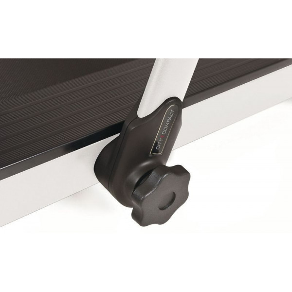Бігова доріжка Toorx Treadmill City Compact Rose Gold (CITY-COMPACT-R) із лінійки Ultra Compact Line італійського виробника Garlando S.p.A. призначена для спортивної ходьби та бігу в домашніх умовах. Модель оснащена попередньо зібраною рамою та транспортувальними роликами, завдяки чому її легко переміщати по квартирі. Бігова доріжка проста в управлінні, має сучасний елегантний дизайн і гарні технічні характеристики. Тренажер розрахований на максимальне навантаження до 100 кг і дозволяє розвивати швидкість від 1 до 14 км/год. Бігове полотно розміром 125 х 44,5 см достатнє для тренування користувачам зростом до 190 см. Зрозумілий дисплей відображає інформацію про швидкість, дистанцію, час, витрату калорій і кроки. Бігова доріжка Toorx Treadmill City Compact Rose Gold (CITY-COMPACT-R) має знімні поручні для додаткової безпеки, а також систему фіксації для безпечного вертикального зберігання.
