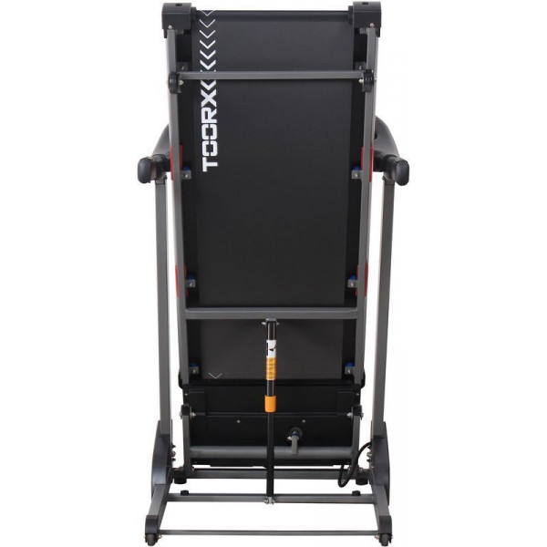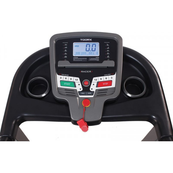 Бігова доріжка Toorx Treadmill Racer (RACER) від італійського виробника Garlando S.p.A. призначена для спортивної ходьби та бігу в домашніх умовах. Модель розрахована на максимальну вагу користувача до 110 кг і має двигун постійного струму 2 к.с., який дозволяє розвивати швидкість від 0,8 до 16 км/год. Бігове полотно розміром 132 х 43 см із можливістю регулювання нахилу від 0 до 12% як кнопками на панелі керування, так і за допомогою кнопок, розташованих на поручнях. Система амортизації Air Cushions знижує навантаження на суглоби та мінімізує ризик отримання травми в процесі занять. Консоль тренажера з LCD-дисплеєм із блакитним підсвічуванням оснащена програмами для користувачів із різними рівнями підготовки. Вбудовані сенсорні датчики вимірювання пульсу будуть доречними під час тренування для контролю частоти серцевих скорочень. Бігова доріжка Toorx Treadmill Racer (RACER) має попередньо зібрану раму та транспортувальні ролики, завдяки чому її легко переміщати по квартирі.
