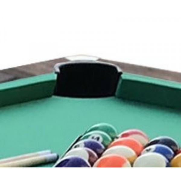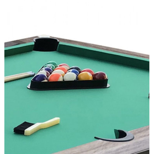 Комплект аксесуарів для старту гри: до набору входять: кулі діаметром 57 мм (тип "Standard"), два дерев'яних кия довжиною 145 см, трикутник, дві крейди та щітка для догляду за полотном.