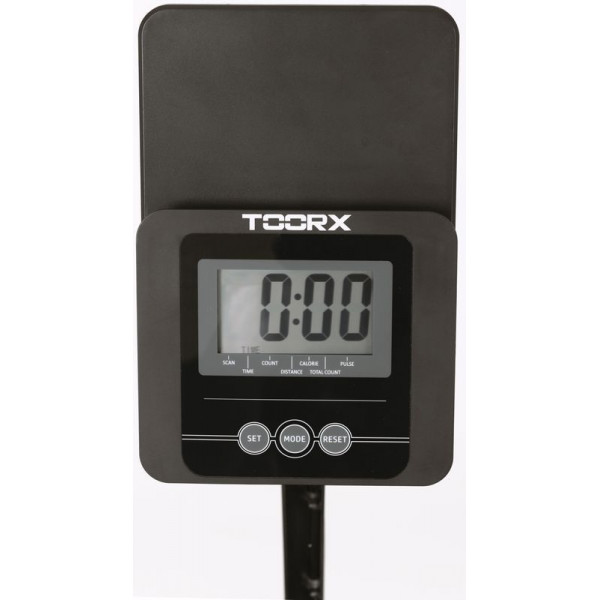 Гребний тренажер Toorx Rower RWX 200 (RWX-200) від італійського виробника Garlando S.p.A. призначений для комплексного кардіотренування в домашніх умовах. Тренажер має 12-рівневе ручне регулювання навантаження, а також простий у використанні комп'ютер. 5-кілограмовий маховик завдяки магнітній системі гальмування забезпечує оптимальну амплітуду рухів, а повітряна система опору імітує відчуття веслування на воді. Гребний тренажер розрахований на вагу до 120 кг, а його сидіння на роликах ковзає по алюмінієвій напрямній, гарантуючи необхідний комфорт навіть за тривалих вправ. Вбудований приймач для бездротового датчика вимірювання пульсу буде доречним під час тренування для контролю частоти серцевих скорочень. Складана конструкція тренажера заощаджує місце та дозволяє розмістити його навіть на мінімальній площі, яка потрібна для занять спортом.