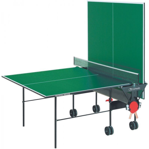 Тенісний стіл Garlando Training Indoor 16 mm Green (C-112I) призначений для гри в настільний теніс у закритих приміщеннях. Ігрова поверхня виконана з високоякісного ДСП товщиною 16 мм із меламіновим покриттям. Каркас та ніжки виготовлені з металевих трубок діаметром 25 мм із порошковим фарбуванням. Чотири здвоєні транспортувальні колеса діаметром 125 мм, два з яких обертаються на 360°, суттєво полегшують переміщення столу за потреби. Тенісний стіл оснащений сіткою та тримачем для ракеток і м'ячів. Складана конструкція з автоматичною системою блокування забезпечує зручне зберігання столу в домашніх умовах. Піднявши одну з половинок стільниці, тенісний стіл можна використовувати як для одиночних тренувань, так і для гри людьми з обмеженими можливостями. Стільниця забезпечує хороший відскік м'яча, а покриття антивідблиску дозволяє грати довше, не напружуючи очей. Тенісний стіл Garlando Training Indoor 16 mm Green (C-112I) відповідає Європейським стандартам безпеки EN 14468-1/2.