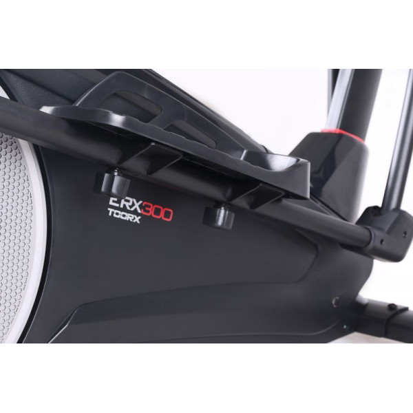 Орбітрек Toorx Elliptical ERX 300 (ERX-300) з преміальної лінійки Chrono Line італійського виробника Garlando S.p.A. призначений для інтенсивного кардіотренування в домашніх умовах. Тренажер має 32 рівня навантаження, що регулюються за допомогою сучасного комп'ютера. 16-кілограмовий маховик створює чудову плавність ходу, знижуючи навантаження на суглоби та мінімізуючи ризик отримання травми в процесі занять. Орбітрек розрахований на вагу до 150 кг, а довжина кроку 41 см припаде до вподоби вимогливим користувачам. Вбудований приймач для бездротового датчика вимірювання пульсу буде доречним під час тренування по одній з чотирьох пульсозалежних програм. Консоль тренажера має тримач для смартфона / планшета і підтримує Bluetooth для інтеграції з популярними додатками iConsole+ Training та Kinomap, які перетворять монотонне тренування в захоплюючий процес.