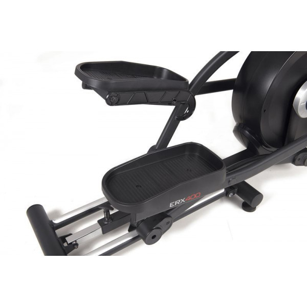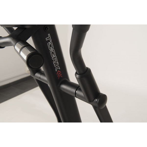 Орбітрек Toorx Elliptical ERX 400 (ERX-400) з преміальної лінійки Chrono Line італійського виробника Garlando S.p.A. призначений для інтенсивного кардіотренування в домашніх умовах. Тренажер має 16 рівнів навантаження, що регулюються за допомогою сучасного комп'ютера із сенсорними кнопками. 16-кілограмовий маховик створює чудову плавність ходу, знижуючи навантаження на суглоби та мінімізуючи ризик отримання травми в процесі занять. Орбітрек розрахований на вагу до 130 кг, а довжина кроку 48 см припаде до вподоби навіть найвибагливішим користувачам. Вбудований приймач для бездротового датчика вимірювання пульсу буде доречним під час тренування по одній з чотирьох пульсозалежних програм. Консоль тренажера має тримач для смартфона/планшета і підтримує Bluetooth для інтеграції з популярним додатком Kinomap, який перетворить монотонне тренування на захоплюючий процес. Складана конструкція орбітрека заощаджує місце і дозволяє розмістити його навіть на мінімальній площі, яка потрібна для занять спортом.