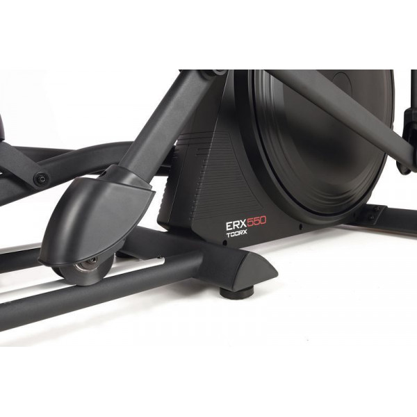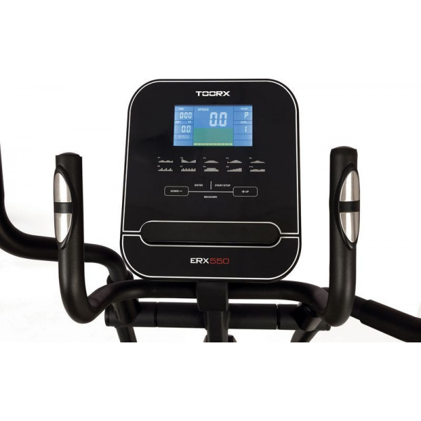 Орбітрек Toorx Elliptical ERX 550 (ERX-550) із преміальної лінійки Chrono Line італійського виробника Garlando S.p.A. призначений для інтенсивного кардіотренування в домашніх умовах. Тренажер має 24 рівні навантаження, що регулюються за допомогою сучасного комп'ютера. 16-кілограмовий маховик створює чудову плавність ходу, знижуючи навантаження на суглоби та мінімізуючи ризик отримання травми в процесі занять. Орбітрек розрахований на вагу до 130 кг, а довжина кроку 51 см припаде до вподоби навіть найвибагливішим користувачам. Вбудований приймач для бездротового датчика вимірювання пульсу буде доречним під час тренування по одній із чотирьох пульсозалежних програм. Консоль тренажера має підставку для смартфона/планшета та підтримує Bluetooth для інтеграції з популярними додатками Kinomap і Zwift, які перетворять монотонне тренування в захоплюючий процес.