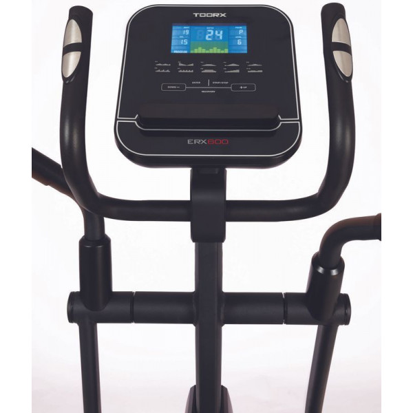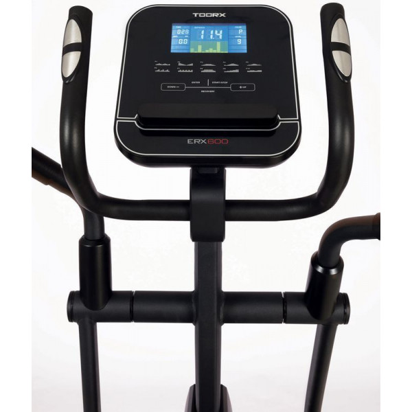 Орбітрек Toorx Elliptical ERX 600 (ERX-600) із преміальної лінійки Chrono Line італійського виробника Garlando S.p.A. призначений для інтенсивного кардіотренування в домашніх умовах. Тренажер має 24 рівні навантаження, що регулюються за допомогою сучасного комп'ютера. 16-кілограмовий маховик створює чудову плавність ходу, знижуючи навантаження на суглоби та мінімізуючи ризик отримання травми в процесі занять. Орбітрек розрахований на вагу до 130 кг, а довжина кроку 51 см припаде до вподоби навіть найвибагливішим користувачам. Вбудований приймач для бездротового датчика вимірювання пульсу буде доречним під час тренування по одній із чотирьох пульсозалежних програм. Консоль тренажера має підставку для смартфона/планшета та підтримує Bluetooth для інтеграції з популярними додатками Kinomap і Zwift, які перетворять монотонне тренування в захоплюючий процес.