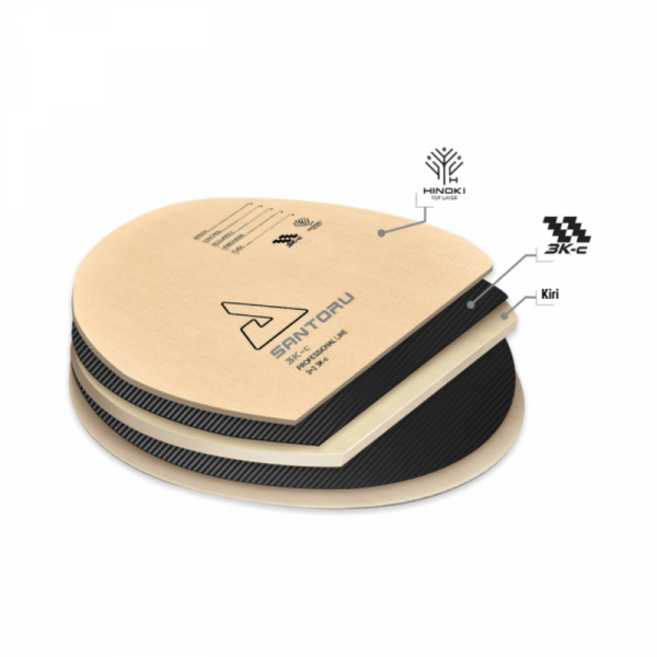 Основа для ракетки Joola Santoru 3K-C надзвичайно жива і захоплююча з першого удару. Надзвичайна чутливість леза допомагає грати потужними м’ячами з будь-якої позиції, але також вимагає певного тренування, щоб освоїти високу швидкість віддачі. Товстий зовнішній шпон Hinoki створює неймовірний ефект катапульти та дуже м’який дотик. Шар карбонового волокна 3K-c безпосередньо під ним підвищує стійкість деревини.