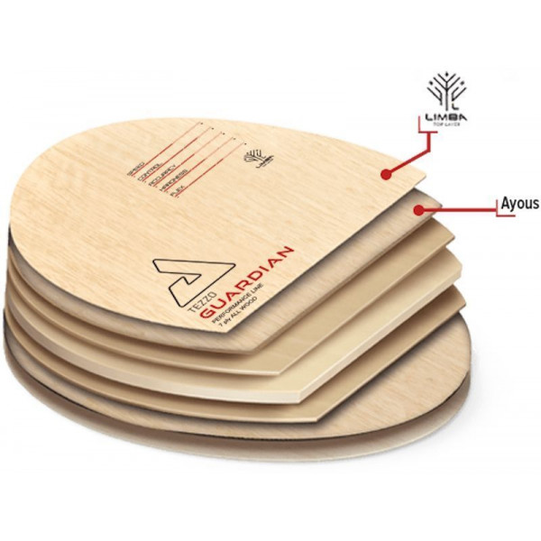 Limba Top Layer - верхній шар в лезах (основи для ракеток) використовується шпон з дерева Limba. Ця африканська деревина має більш м'яку структуру (Monnin hardness = 2.4) в порівнянні з популярною деревиною Koto. Верхній шар Limba є ідеальною деревиною для ракеток, які сфокусовані на прискоренні м’яча шляхом обертання (spin). Ідеально підходить для виконання топ-спінів. Додатковим бонусом деревини Limba є чудові акустичні властивості. Вона створює надзвичайно приємний звук, який нагадає вам про вашу любов до гри.