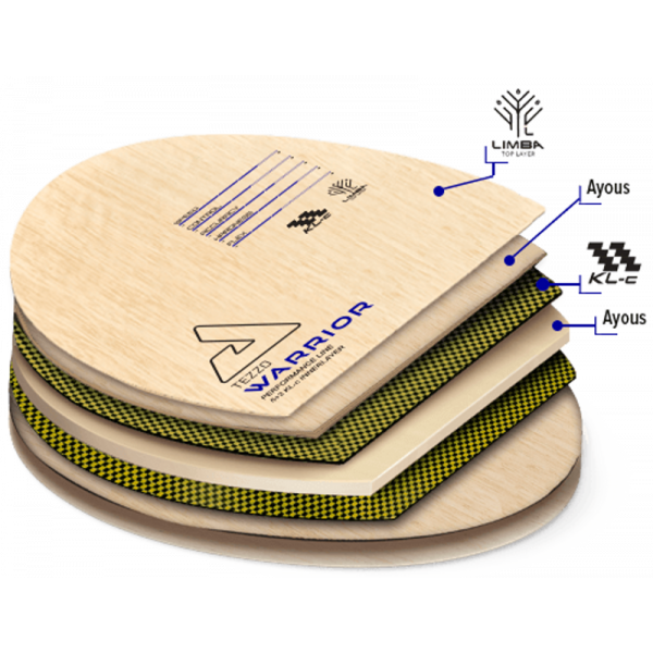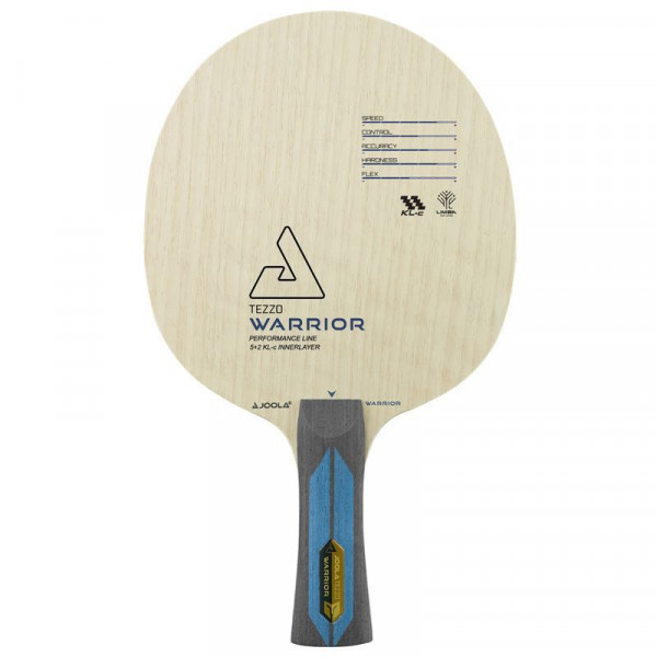 Основа для ракетки Joola Tezzo Warrior вражає потужною внутрішньою конструкцією з карбонового волокна KL-c і особливо чутливим верхнім шаром шпону з деревини Limba. Ця комбінація забезпечує м’яке відчуття удару та величезний ефект катапульти, який надає вашим атакувальним м'ячам більшої сили. У поєднанні з твердішими гумами це призводить до дуже добре збалансованої наступальної зброї. Гравці, які раніше грали ракетками з основами з суцільної деревини і хотіли перейти на карбонову основу знайшли перехід на TEZZO WARRIOR дуже успішним. Це було, зокрема, у випадку двох національних гравців Vitor Ishiy з Бразилії та Deni Kozul з Словенії.