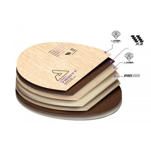 Якщо ви шукаєте революційну деревину, яка поєднує в собі потужність, силу, відчуття та точність, ви не пошкодуєте, вибравши JOOLA Vyzaryz Trinity. Цю деревину вибрав австрійський тенісист Даніель Хабесон (Daniel Habesohn), чемпіон Європи та олімпієць. Секрет цієї деревини полягає в революційній суперкомпозитній тканині X3, що складається з горизонтальних шарів синтетичного матеріалу PBO-C, а також вертикальних шарів арилату і вуглецю (ARY-c). Ці шари поширюються на ручку, створюючи надзвичайну стабільність і консистенцію. Зовнішній шар деревини Limba додає більше дотику та контролю кожного удару.