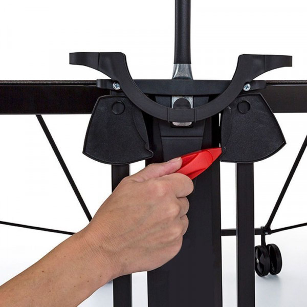 - Чотири здвоєні колеса Ø125 мм, два з яких обертаються на 360°, полегшують переміщення столу в складеному вигляді.