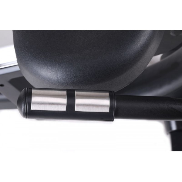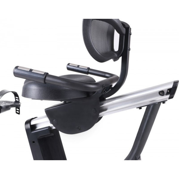 Горизонтальний велоергометр Toorx Recumbent Bike BRXR 300 ERGO (BRX-R300ERGO) із преміальної лінійки Chrono Line від італійського виробника Garlando S.p.A. призначений для комфортного кардіотренування в домашніх умовах. Тренажер має 32 рівня навантаження, що регулюються за допомогою сучасного комп'ютера. 16-кілограмовий маховик створює чудову плавність ходу, знижуючи навантаження на суглоби та мінімізуючи ризик отримання травми в процесі занять. Велоергометр розрахований на вагу користувача до 150 кг і має зручну спинку з дихаючої сітки для більшого комфорту. Вбудований приймач для бездротового датчика вимірювання пульсу буде доречним під час тренування по одній із чотирьох пульсозалежних програм. Консоль тренажера має підставку для смартфона/планшета та підтримує Bluetooth для інтеграції з популярними програмами iConsole+ Training, Kinomap і Zwift, які перетворять монотонне тренування в захоплюючий процес. Сидіння велоергометра регулюється в горизонтальній площині для індивідуального настроювання, а транспортувальні ролики в передній частині тренажера дозволяють переміщати його по кімнаті.