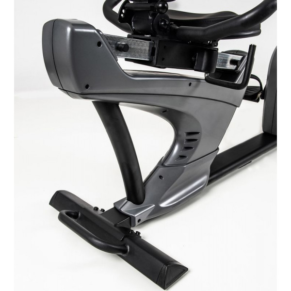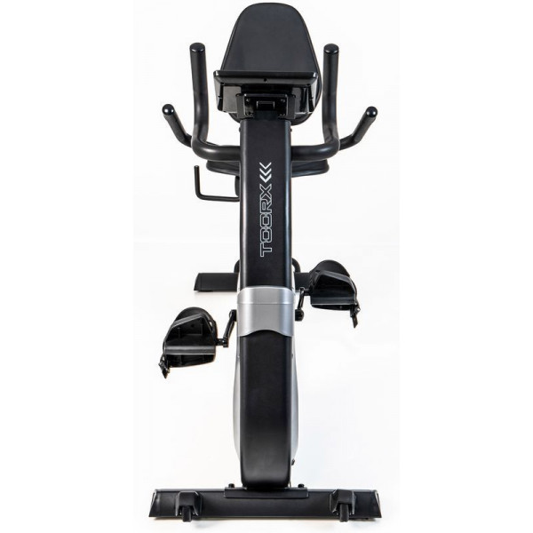Горизонтальний велоергометр Toorx Recumbent Bike BRXR 3000 (BRX-R3000) із лінійки Light Commercial від італійського виробника Garlando S.p.A. призначений для комфортного кардіотренування як вдома, так і в невеликих фітнес клубах. Велоергометр із індукційною магнітною системою гальмування має 32 рівня навантаження, що регулюються за допомогою сучасного комп'ютера. 16-кілограмовий маховик створює відмінну плавність ходу, знижуючи навантаження на суглоби та мінімізуючи ризик отримання травми в процесі занять. Велоергометр розрахований на вагу до 160 кг і має зручну спинку з можливістю регулювання кута нахилу для більшого комфорту. Вбудований приймач для бездротового датчика вимірювання пульсу буде доречним під час тренування по одній із чотирьох пульсозалежних програм. Консоль тренажера має підставку для смартфона/планшета та підтримує Bluetooth для інтеграції з популярними програмами iConsole+ Training і Kinomap, які перетворять монотонне тренування в захоплюючий процес. Сидіння велоергометра регулюється в горизонтальній площині для індивідуального налаштування, а транспортувальні ролики в передній частині тренажера дозволяють переміщати його по кімнаті за допомогою зручної ручки.