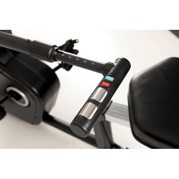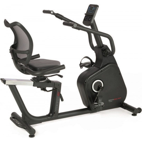 Горизонтальний велотренажер реабілітаційний Toorx Recumbent Bike BRXR Multifit (BRX-RMULTIFIT) із преміальної лінійки Chrono Line від італійського виробника Garlando S.p.A. призначений для комфортного кардіотренування в домашніх умовах. Дана модель не має собі рівних на ринку, оскільки оснащена рухомими важелями, синхронізованими з педалями, а також зручними кнопками для регулювання рівнями навантаження, що гарантують можливість тренування верхніх кінцівок разом із нижніми. Сидіння велотренажера регулюється в горизонтальній площині, а також повертається на 90 градусів праворуч або ліворуч, що забезпечує легкий доступ для людей із обмеженою рухливістю. 14-кілограмовий маховик створює чудову плавність ходу, знижуючи навантаження на суглоби та мінімізуючи ризик отримання травми в процесі занять. Велотренажер розрахований на вагу користувача до 120 кг і має зручну спинку з дихаючої сітки для більшого комфорту. Вбудований приймач для бездротового датчика вимірювання пульсу буде доречним під час тренування по одній із чотирьох пульсозалежних програм. Консоль тренажера має підставку для смартфона/планшета та підтримує Bluetooth для інтеграції з популярними програмами Kinomap і Zwift, які перетворять монотонне тренування в захоплюючий процес. Транспортувальні ролики в передній частині тренажера дозволяють переміщати його по кімнаті.