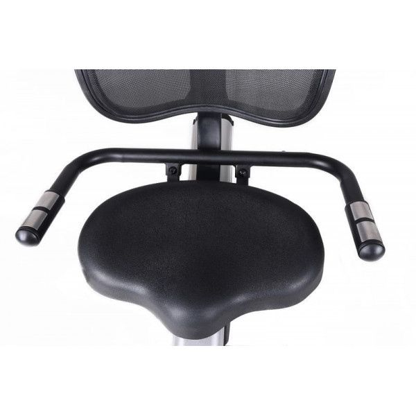 Горизонтальний велотренажер Toorx Recumbent Bike BRXR 300 (BRX-R300) із преміальної лінійки Chrono Line від італійського виробника Garlando S.p.A. призначений для комфортного кардіотренування в домашніх умовах. Тренажер має 32 рівня навантаження, що регулюються за допомогою сучасного комп'ютера. 14-кілограмовий маховик створює чудову плавність ходу, знижуючи навантаження на суглоби та мінімізуючи ризик отримання травми в процесі занять. Велотренажер розрахований на вагу користувача до 150 кг і має зручну спинку з дихаючої сітки для більшого комфорту. Вбудований приймач для бездротового датчика вимірювання пульсу буде доречним під час тренування по одній із чотирьох пульсозалежних програм. Консоль тренажера має підставку для смартфона/планшета та підтримує Bluetooth для інтеграції з популярними програмами iConsole+ Training і Kinomap, які перетворять монотонне тренування в захоплюючий процес. Сидіння велотренажера регулюється в горизонтальній площині для індивідуального настроювання, а транспортувальні ролики в передній частині тренажера дозволяють переміщати його по кімнаті.