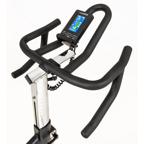 Сайкл-тренажер Toorx Indoor Cycle SRX 3500 (SRX-3500) із лінійки Light Commercial від італійського виробника Garlando S.p.A. призначений для комфортного кардіотренування в домашній фітнес залі. Тренажер із магнітною системою гальмування має 32 рівні навантаження, що регулюються за допомогою сучасного комп'ютера. 24-кілограмовий маховик створює відмінну плавність ходу, знижуючи навантаження на суглоби та мінімізуючи ризик отримання травм в процесі занять. Ремінний привод обладнаний з незалежною системою обертання, що дозволяє перервати тренування у будь-який момент незалежно від маховика. Незалежна система обертання розширює можливості, ви самі контролюєте необхідну кількість обертань на хвилину, або різку зміну темпу чи екстрену зупинку не очікуючи зупинки маховика та уникаючи травмувань. Тренажер оснащений новітньою магнітною гальмівною системою, яка безпосередньо впливає на маховик, що дозволяє надзвичайно плавно обертати педалі на найнижчих рівнях навантаження. Спін байк розрахований на вагу користувача до 150 кг та зростом до 2 м. Спортивне сидіння й кермо регулюються по висоті та в горизонтальній площині, забезпечуючи індивідуальне налаштування. Вбудований приймач для бездротового датчика вимірювання пульсу буде доречним під час тренування по одній із чотирьох пульсозалежних програм. Консоль тренажера має підставку для смартфона/планшета та підтримує Bluetooth для інтеграції з популярними програмами iConsole+ Training і Kinomap, які перетворять монотонне тренування в захоплюючий процес. Транспортувальні ролики та ручка полегшують переміщення тренажера та роблять його доступним для всієї сім'ї.