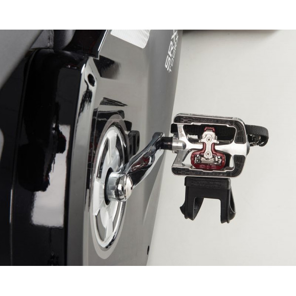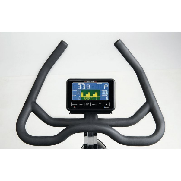Сайкл-тренажер Toorx Indoor Cycle SRX 500 (SRX-500) із преміальної лінійки Chrono Line італійського виробника Garlando S.p.A. призначений для інтенсивного кардіотренування в домашніх умовах. Тренажер оснащений новітньою магнітною гальмівною системою, яка безпосередньо впливає на маховик, що дозволяє надзвичайно плавно обертати педалі на найнижчих рівнях навантаження, а також сучасний комп'ютер із необхідним набором функцій. Важкий 24-кілограмовий маховик разом з ремінним приводом забезпечують безшумність роботи тренажера і достатнє навантаження навіть для підготовлених спортсменів. Спін байк розрахований на вагу до 150 кг і підійде для користувачів зростом до 2 м. Нагрудний кардіодатчик для бездротового вимірювання пульсу буде доречним під час тренування по одній із чотирьох пульсозалежних програм. Спортивне сидіння і кермо регулюються по висоті та в горизонтальній площині, забезпечуючи індивідуальне налаштування. Транспортувальні ролики в передній частині тренажера дозволяють вільно переміщати його по кімнаті. Консоль тренажера має підставку для смартфона/планшета та підтримує Bluetooth для інтеграції з популярними додатками iConsole+ Training, Kinomap і Zwift, які перетворять монотонне тренування в захоплюючий процес.