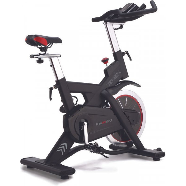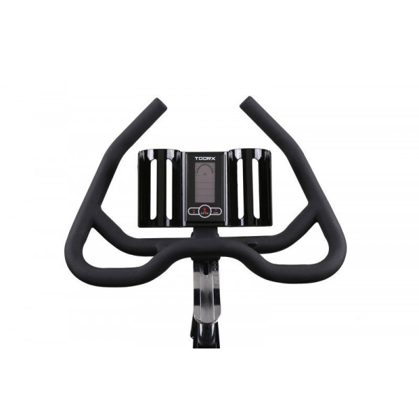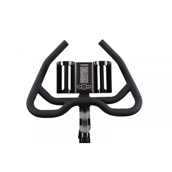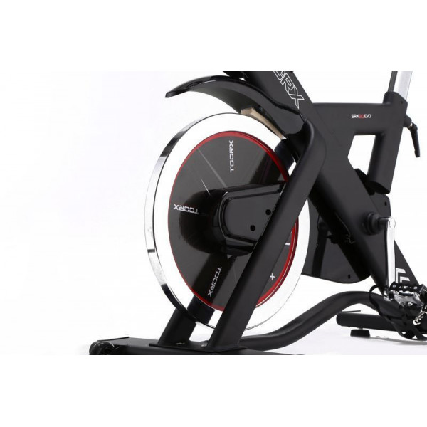 Сайкл-тренажер Toorx Indoor Cycle SRX 80EVO (SRX-80EVO) від італійського виробника Garlando S.p.A. призначений для інтенсивного кардіотренування в домашніх умовах. Тренажер має колодкову гальмівну систему з ручним безступінчатим регулюванням навантаження, а також сучасний комп'ютер із необхідним набором функцій. Важкий 24-кілограмовий маховик разом із ремінним приводом забезпечують безшумність роботи тренажера та достатнє навантаження навіть для підготовлених спортсменів. Спін байк розрахований на вагу до 140 кг і підійде для користувачів зростом до 2 м. Нагрудний кардіодатчик для бездротового вимірювання пульсу буде доречним під час тренування для контролю частоти серцевих скорочень. Спортивне сидіння та кермо регулюються по висоті та в горизонтальній площині, забезпечуючи індивідуальне налаштування. Транспортувальні ролики в передній частині тренажера дозволяють вільно переміщати його по кімнаті.
