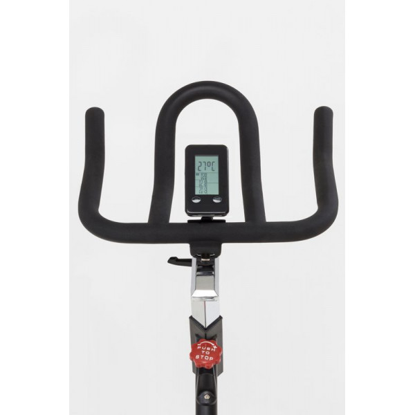 Сайкл-тренажер Toorx Indoor Cycle SRX 90 (SRX-90) від італійського виробника Garlando S.p.A. призначений для інтенсивного кардіотренування в домашніх умовах. Тренажер має колодкову гальмівну систему з ручним безступінчатим регулюванням навантаження, а також сучасний комп'ютер із необхідним набором функцій. Важкий 24-кілограмовий маховик разом із ремінним приводом забезпечують безшумність роботи тренажера та достатнє навантаження навіть для підготовлених спортсменів. Спін байк розрахований на вагу до 140 кг і підійде для користувачів зростом до 2 м. Нагрудний кардіодатчик для бездротового вимірювання пульсу буде доречним під час тренування для контролю частоти серцевих скорочень. Спортивне сидіння та кермо регулюються по висоті та в горизонтальній площині, забезпечуючи індивідуальне налаштування. Транспортувальні ролики в передній частині тренажера дозволяють вільно переміщати його по кімнаті.