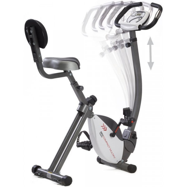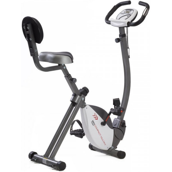 Велотренажер Toorx Upright Bike BRX Compact Multifit (BRX-COMPACT-MFIT) від італійського виробника Garlando S.p.A. призначений для повноцінного кардіотренування в домашніх умовах. Тренажер має 8-рівневе ручне регулювання навантаження, а також простий у користуванні комп'ютер. 6-кілограмовий маховик створює достатню плавність ходу, знижуючи навантаження на суглоби та мінімізуючи ризик отримання травми в процесі занять. Велотренажер розрахований на вагу до 100 кг і підійде для користувачів зростом до 1,9 м. Вбудовані сенсорні датчики вимірювання пульсу будуть доречними під час тренування для контролю частоти серцевих скорочень. Сидіння велотренажера з відкидною спинкою регулюється по висоті, кермо має регулювання як кута нахилу, так і по вертикалі для індивідуального налаштування. Транспортувальні ролики в передній частині тренажера дозволяють переміщати його по кімнаті.