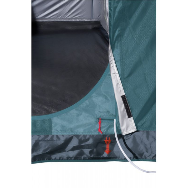 Намет чотиримісний Ferrino Fenix 4 Petrol (91192MBB) - сімейний тунельний намет із трьома входами, просторим тамбуром із вшитою підлогою та спальнею зі знімною перегородкою. Москітні сітки на вхідних дверях забезпечують захист від настирливих комах. Система вентиляції Air Ventilation System забезпечує постійну циркуляцію повітря, а також позбавляє утворенню конденсату. Фронтальні вікна та панорамне бічне вікно наповнюють внутрішній простір світлом. Висота тамбура 180 см дозволяє стояти на повний зріст.