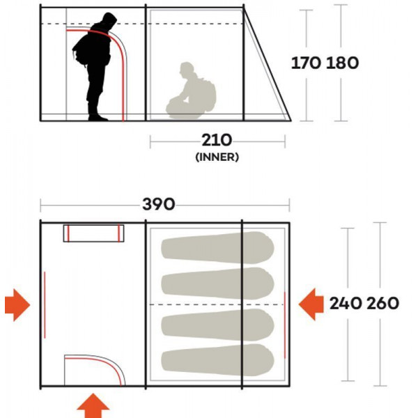 - Кишені у внутрішньому наметі дозволяють зберігати предмети першої необхідності.