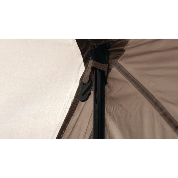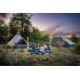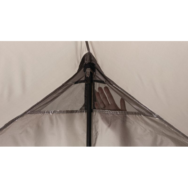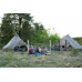 Easy Camp Moonlight Cabin Grey (120444) - великий десятимісний глемпінговий намет, виконаний у формі шатра зі сталевим стовпом у центрі. Конструкція намету забезпечує великий внутрішній простір для яскравого відпочинку та розваг просто неба із сім'єю та друзями. Великі групи туристів можуть спати з обох боків центрального стовпа, тоді як невеликі групи можуть використовувати одну сторону як житловий простір.