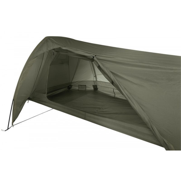 Ferrino Lightent 2 Pro Olive Green (92171LOOFR) відноситься до серії ультралегких наметів Ferrino Light Line. Дана модель має підвищену до 8000 мм вод. ст. водонепроникність дна та підійде не тільки для літніх, а й для весняно-осінніх походів, коли можливе випадіння великої кількості опадів. Внутрішній намет повністю складається з москітної сітки і попередньо прикріплений до зовнішнього тенту для швидкості установки. Тунельна конструкція забезпечує мінімальну вагу при більшому об'ємі внутрішнього простору, чому сприяють попередньо вигнуті алюмінієві дуги. Встановлення намету займає мало часу та потребує мінімум місця. Не дивлячись на те, що намет двошаровий, його вага складає всього 2,1 кг. Зовнішній тент має водозахист 3000 мм вод. ст., що є цілком достатнім для збереження намету сухим всередині під час дощу. Ефективна система вентиляції Camera Air доповнена бічним вентиляційним вікном, що допоможе уникнути утворення конденсату.