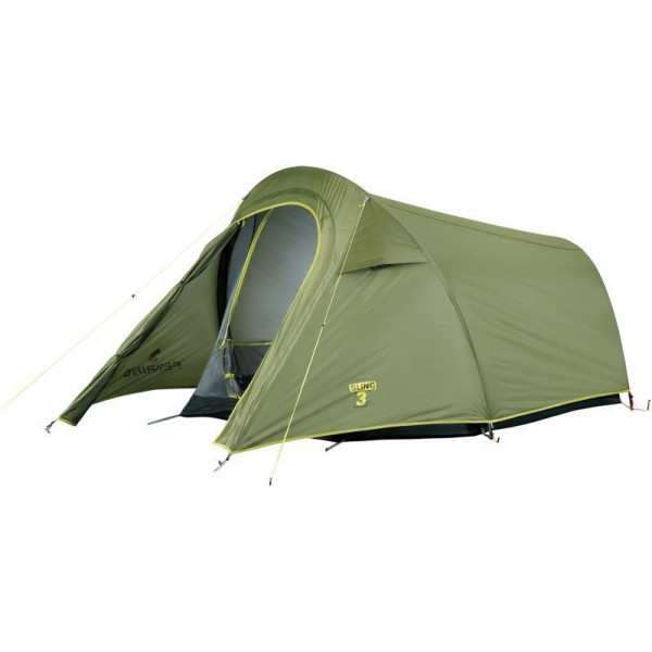 Ferrino Sling 3 Green (91036MVV) відноситься до серії трисезонних наметів Ferrino і стане знахідкою для тих, хто шукає легкий намет із достатнім внутрішнім простором, містким тамбуром та мінімальним часом встановлення. Незважаючи на те, що намет двошаровий, його вага у зборі становить менше восьмисот грамів у розрахунку на людину. Внутрішній намет повністю складається з москітної сітки, його можна використовувати окремо від зовнішнього тенту в теплі ночі. Ступінь водозахисту цілком достатній, щоб за умови правильної установки зберегти намет сухим усередині під час дощу. Ефективна система вентиляції Camera Air доповнена двома вентиляційними вікнами для запобігання утворенню конденсату. Ferrino Sling 3 Green (91036MVV) - відмінний вибір для подорожі на велосипеді або пішки.
