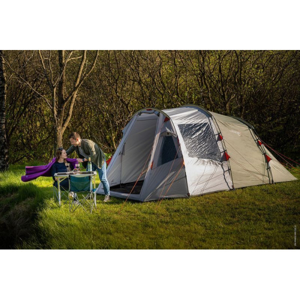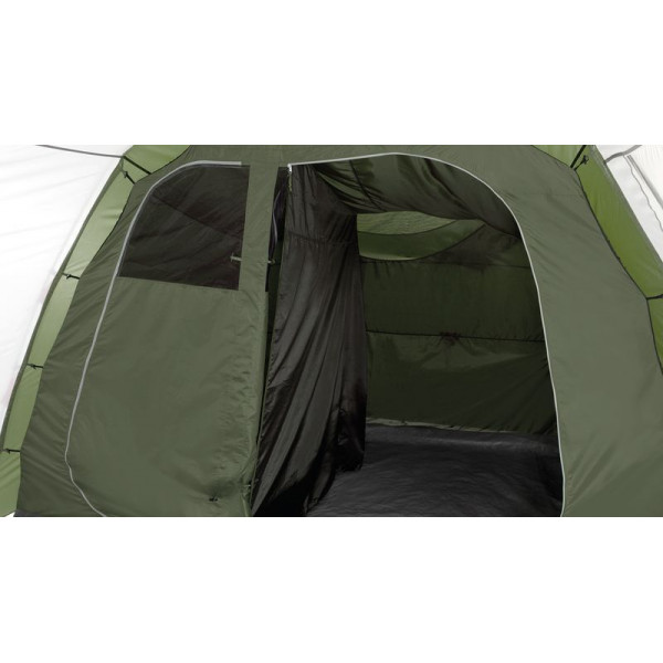 Easy Camp Huntsville 500 Green/Grey (120407) - п'ятимісний тунельний намет із просторою житловою зоною та двома затемненими роздільними спальнями зі знімною перегородкою. Попередньо вигнуті дуги забезпечують достатню висоту стелі. Просторий тамбур дозволяє розмістити кемпінгові меблі та має велике вікно для огляду. Тильна регульована вентиляційна панель та фронтальні вентиляційні вікна забезпечують відмінну циркуляцію повітря, а також позбавляють конденсату. Москітна сітка на дверях внутрішнього намету захищає від настирливих комах. Повнорозмірну знімну підлогу тамбура можна легко зняти під час прибирання. Штори на вікнах сприяють усамітненню в разі потреби. Намет п'ятимісний Easy Camp Huntsville 500 Green/Grey (120407) ідеально підходить для комфортного відпочинку.