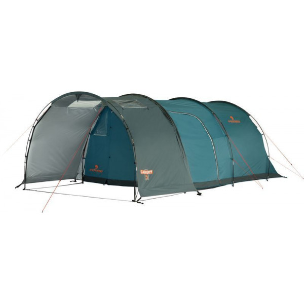 Намет пʼятимісний Ferrino Fenix 5 Petrol (91193LBB) - сімейний тунельний намет із трьома входами, просторим тамбуром із вшитою підлогою та спальнею зі знімною перегородкою. Москітні сітки на вхідних дверях забезпечують захист від настирливих комах. Система вентиляції Air Ventilation System забезпечує постійну циркуляцію повітря, а також позбавляє утворенню конденсату. Фронтальні вікна та панорамне бічне вікно наповнюють внутрішній простір світлом. Висота тамбура 200 см дозволяє стояти на повний зріст.