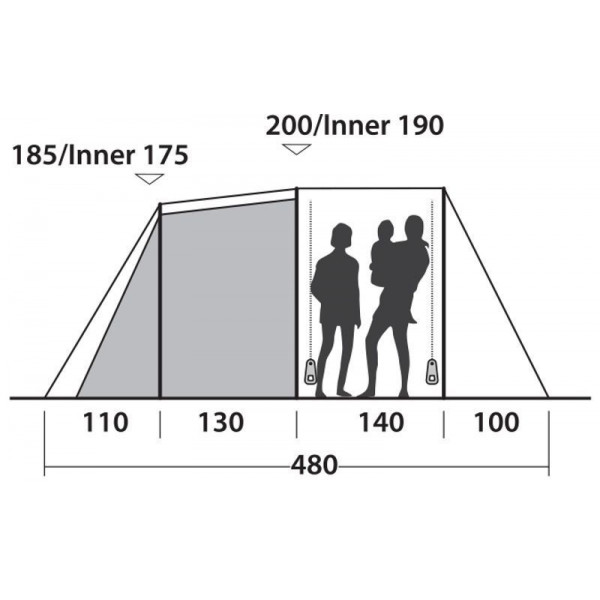 - Затемнені стіни та стеля внутрішнього намету зменшують проникнення світла, що сприяє гарному сну.