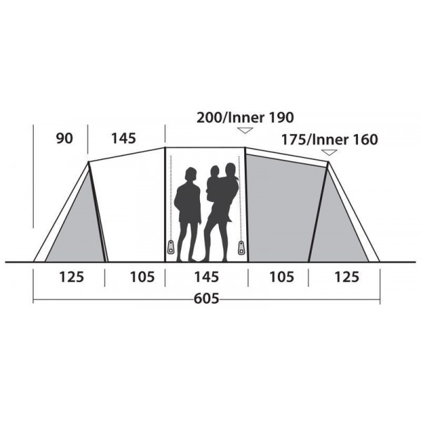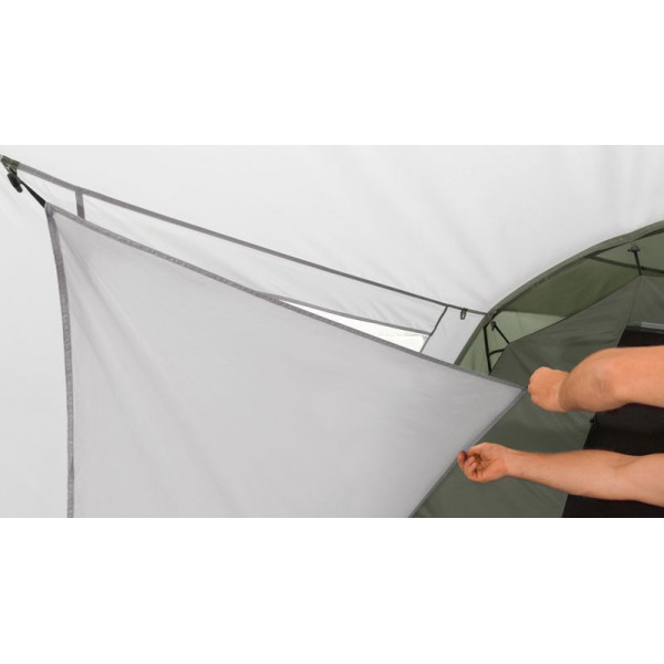 Easy Camp Huntsville Twin 600 Green/Grey (120409) - шестимісний тунельний намет із просторою житловою зоною та трьома роздільними спальнями різного планування. Попередньо вигнуті дуги забезпечують достатню висоту стелі. Великий світлий тамбур із прозорими вікнами та двома вхідними дверима ідеально підходить для щасливого проживання в кемпінгу. Бічні регульовані вентиляційні панелі, а також москітні сітки на дверях внутрішніх наметів забезпечують відмінну циркуляцію повітря, позбавляючи конденсату та захищаючи від комах. Повнорозмірну знімну підлогу тамбура можна легко зняти під час прибирання. Штори на вікнах сприяють усамітненню в разі потреби. Easy Camp Huntsville Twin 600 Green/Grey (120409) - чудовий вибір як для великої родини, так і для відпочинку з друзями.