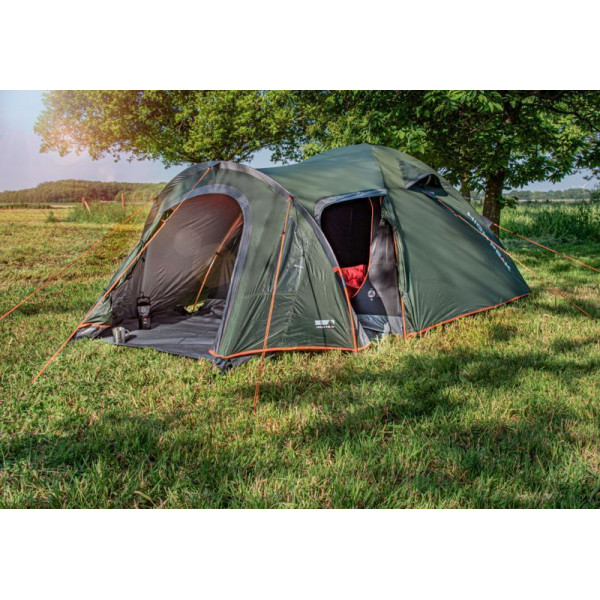 High Peak Kira 3.1 Deep Forest (10371) - тримісний купольний намет із просторим тунельним тамбуром і додатковим бічним входом. Модель має алюмінізоване покриття зовнішнього тенту, яке зміцнює тканину та знижує підвищення температури всередині в сонячну погоду. Намет оснащений екологічно чистим водовідштовхувальним DWR-просоченням без PFC елементів. Високоефективна система вентиляції Advanced Low Vent System забезпечує оптимальну циркуляцію повітря навіть у дощові дні. Достатня відстань між внутрішнім наметом і зовнішнім тентом суттєво зменшує утворення конденсату. Затемнена спальня не пропускає яскраве світло, дозволяючи виспатися всім, хто пізно прокидається. Система вентиляції внутрішнього намету Vario Vent Control забезпечує регульований потік свіжого повітря, щоб ви могли виспатися ще краще. Всі шви дна і тенту проклеєні спеціальною стрічкою, гарантуючи захист від проникнення вологи в дощову погоду. В наметі зможуть без проблем розміститися дві-три людини з усім спорядженням. Намет тримісний High Peak Kira 3.1 Deep Forest (10371) стане ідеальним вибором для відпочинку на вихідних.