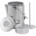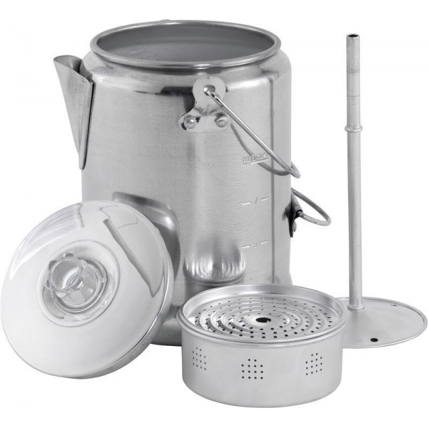 Кавоварка туристична Easy Camp Adventure Coffee Pot 1.4L Silver (680197) перколяторного типу є алюмінієвим чайником, в нижній частині якого знаходиться камера, близька до джерела тепла. Дана камера за допомогою трубки з'єднана з окремою перфорованою ємністю для меленої кави, розташованої у верхній частині кавоварки. Для приготування кави в основну ємність кавоварки заливається необхідна кількість води, а у верхню засипається мелена кава, після чого кавоварка міститься над джерелом тепла. В процесі кипіння гаряча вода піднімається трубкою в ємність з кавою і виливається у верхній її частині. Вода просочується через мелену каву, після чого готовий напій стікає через перфорацію на дні ємності в основну ємність чайника. Таким чином, за підтримки температури кипіння процес заварювання може тривати практично необмежений час.