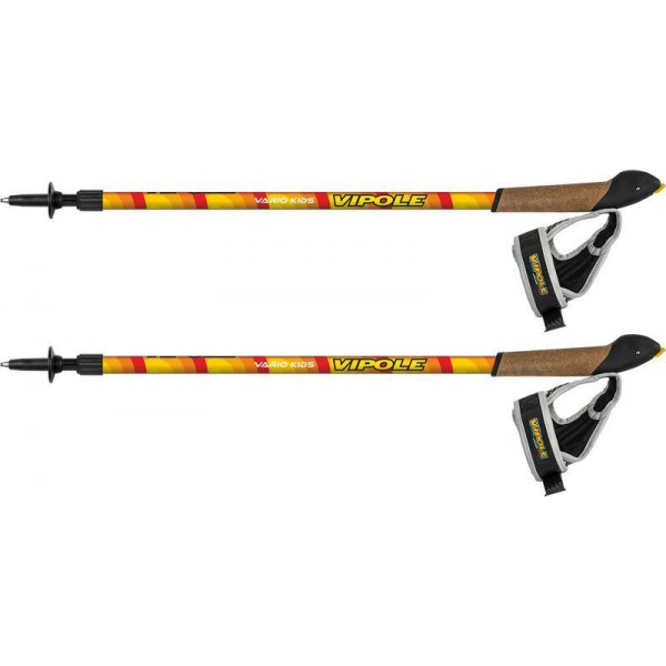 Компанія Vipole створила спеціальні дитячі палиці для скандинавської ходьби, які мають весь функціонал повноцінних палиць для дорослих, але при цьому значно легше і коротше стандартних палиць і оснащені зменшеним темляком, адаптованим під дитячий або жіночий розмір руки. Vipole Vario Kids (S20 38) ідеально підходять для дітей і підлітків зростом від 95 до 150 см. Палиці виготовлені з алюмінієвого сплаву Alu 7075, який має поєднання легкості та міцності, недоступне для інших матеріалів. Асиметричні темляки Nordic Power із дихаючого гіпоалергенного неопрену ідеально фіксують кисть, дозволяючи вам відштовхуватися, не стискаючи рукоятку палиці. За необхідності можна миттєво звільнити руку від палиці завдяки системі швидкого відстібування Top-Click. Внутрішній затискач TwistLock дозволяє встановити необхідну довжину, що відповідає вашому зросту, та надійно зафіксувати телескопічні секції палиці. Наконечник із карбіду вольфраму має достатню твердість і високу стійкість до зношення.