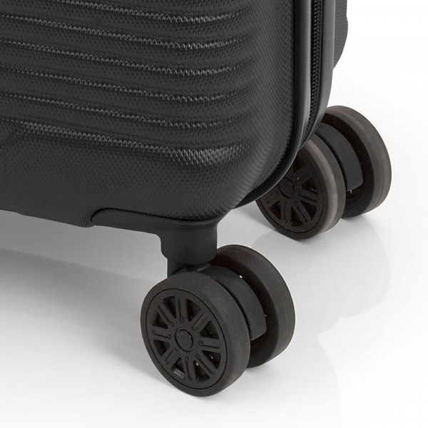 Валіза Gabol Balance XP (S) Grey (123422-016) оснащена чотирма колесами з можливістю незалежного розвороту кожного колеса на 360°. Система передбачає рівномірний перерозподіл навантаження на кожне колесо, що своєю чергою сприяє плавному руху та маневреності валізи, докладаючи при цьому мінімум зусиль. Колеса виготовлені з високотемпературного термопластичного поліуретану (TPU). Матеріал має міцність порівнянну з пластиком, гнучкістю силікону, а також підвищену стійкість до перепадів температури. Відмінною особливістю коліс із TPU матеріалу є зниження шуму до мінімуму під час руху валізи нерівною поверхнею. Завдяки стійкості до стирання, матеріал коліс відрізняється тривалим терміном експлуатації.