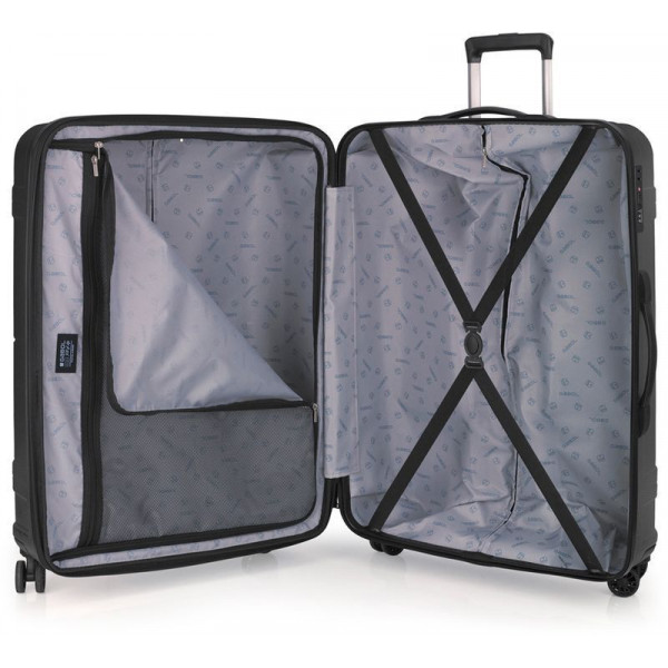 Валіза Gabol Bari (L) Black (123647-001) втілює в собі легкість, надійність та мінімалістичний дизайн, які надають їй винятковості. Корпус валіз серії Bari виготовлений із легкого та водночас міцного матеріалу ABS-пластику. Цей матеріал поєднує в собі легкість, стійкість до деформацій та механічних пошкоджень.