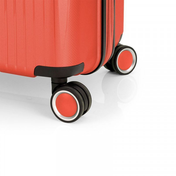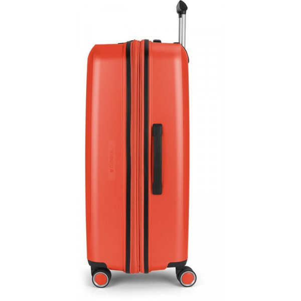 Валіза Gabol Brooklyn (L) Coral (123947-036) втілює в собі легкість і надійність, а насичений колір та сучасний дизайн надають їй винятковості. Корпус валіз серії Brooklyn виготовлений із поліпропілену. Цей матеріал поєднує в собі максимальну легкість, стійкість до деформацій, вигоряння та механічних пошкоджень. Внутрішній простір розділений на два відділення перегородкою, яка має кишеню на блискавці. Завдяки функції розширення можливо збільшити обʼєм валізи до 119,6 літрів та розмістити ще більше необхідних речей. Валіза оснащена чотирма здвоєними колесами з можливістю розвороту на 360°. Конструкція забезпечує рівномірний перерозподіл навантаження на кожне колесо, що сприяє плавному руху та маневреності валізи. Колеса виготовлені з термопластичного поліуретану (TPU). Цей матеріал має міцність порівнянну з пластиком, гнучкістю силікону, а також підвищену стійкість до перепадів температури та стирання. Завдяки цьому колеса мають тривалий термін експлуатації. Відмінною особливістю коліс із TPU-матеріалу є зниження шуму до мінімуму під час руху валізи нерівною поверхнею.