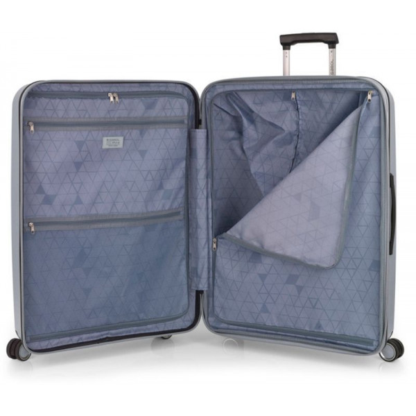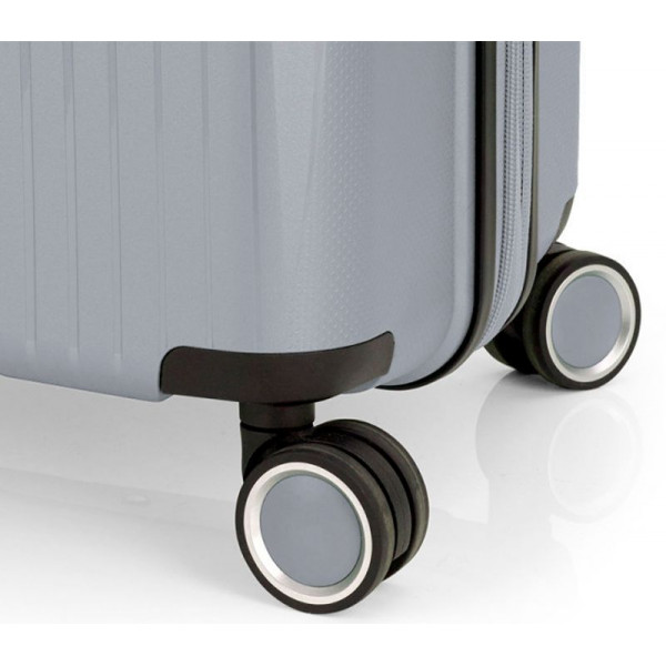 Валіза Gabol Brooklyn (L) Plata (123947-022) втілює в собі легкість і надійність, а мінімалістичний та сучасний дизайн надають їй винятковості. Корпус валіз серії Brooklyn виготовлений із поліпропілену. Цей матеріал поєднує в собі максимальну легкість, стійкість до деформацій, вигоряння та механічних пошкоджень. Внутрішній простір розділений на два відділення перегородкою, яка має кишеню на блискавці. Завдяки функції розширення можливо збільшити обʼєм валізи до 119,6 літрів та розмістити ще більше необхідних речей. Валіза оснащена чотирма здвоєними колесами з можливістю розвороту на 360°. Конструкція забезпечує рівномірний перерозподіл навантаження на кожне колесо, що сприяє плавному руху та маневреності валізи. Колеса виготовлені з термопластичного поліуретану (TPU). Цей матеріал має міцність порівнянну з пластиком, гнучкістю силікону, а також підвищену стійкість до перепадів температури та стирання. Завдяки цьому колеса мають тривалий термін експлуатації. Відмінною особливістю коліс із TPU-матеріалу є зниження шуму до мінімуму під час руху валізи нерівною поверхнею.