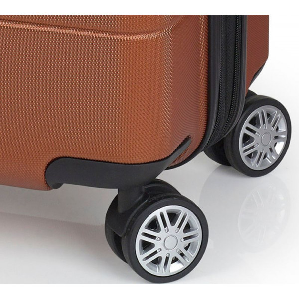Валіза оснащена чотирма колесами з можливістю незалежного розвороту кожного колеса на 360°. Система передбачає рівномірний перерозподіл навантаження на кожне колесо, що своєю чергою сприяє плавному руху та маневреності валізи, докладаючи при цьому мінімум зусиль. Колеса виготовлені з високотемпературного термопластичного поліуретану (TPU). Відмінною особливістю коліс із TPU матеріалу є зниження шуму до мінімуму під час руху валізи нерівною поверхнею. Завдяки стійкості до стирання, матеріал коліс відрізняється тривалим терміном експлуатації.