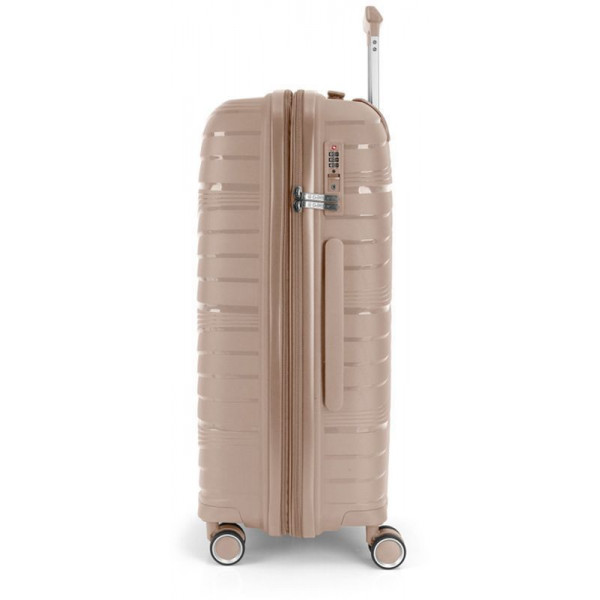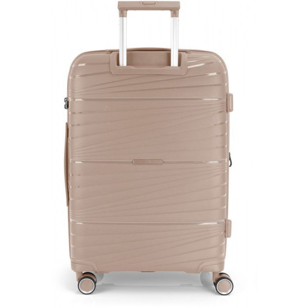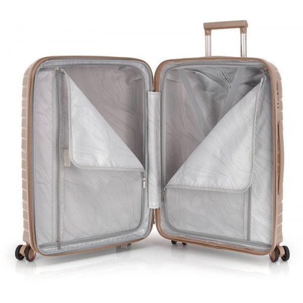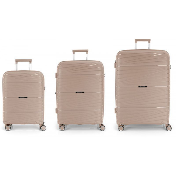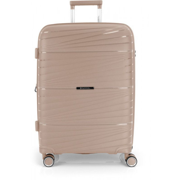 Корпус валіз Gabol серії Kiba виконаний з міцного та довговічного матеріалу - поліпропілену, що дуже важливо для валіз, які перевозяться в багажних відділеннях. Внутрішній об'єм розділений перегородкою на два відділення та має ремені для фіксації речей усередині. Валіза обладнана розширювальним клапаном, який дозволяє збільшити об'єм до 80 літрів.