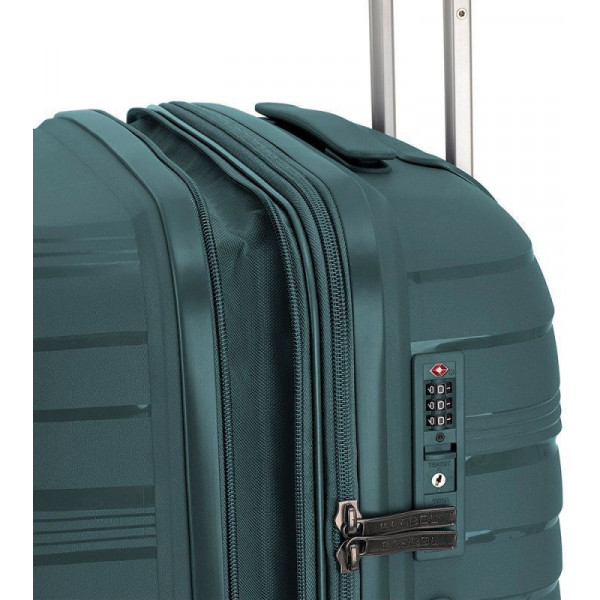 Валіза Gabol Kiba (S) Verde (122022-004) оснащена чотирма повноповоротними колесами з можливістю незалежного розвороту кожного колеса на 360°. Системою передбачено рівномірний перерозподіл навантаження на кожне колесо, що у свою чергу сприяє плавному руху та маневреності валізи, докладаючи при цьому мінімум зусиль. Колеса виготовлені із високотемпературного термопластичного поліуретану (TPU). Матеріал має міцність порівнянну з пластиком, гнучкістю силікону, а також має підвищену стійкість до перепадів температур. Відмінною особливістю коліс із TPU матеріалу є зниження шуму до мінімуму під час руху валізи по нерівній поверхні. Завдяки стійкості до стирання матеріал коліс відрізняється тривалим терміном експлуатації. Валіза обладнана фірмовим кодовим замком з функцією митного огляду TSA (Transportation Security Administration – Адміністрація з безпеки на транспорті).