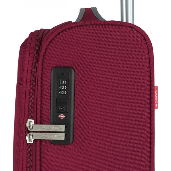 Валіза Gabol серії Zambia оснащена кодовим замком системи TSA для підвищення безпеки. Каркас дна легкий та міцний. На лицьовій частині розміщено кишеню на блискавці. Внутрішній об'єм має ремені для фіксації речей усередині. Валіза легка, маневрена та зручна для транспортування.