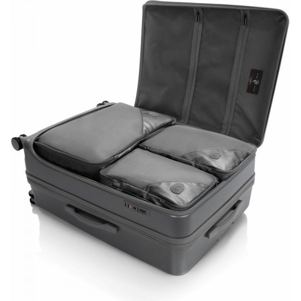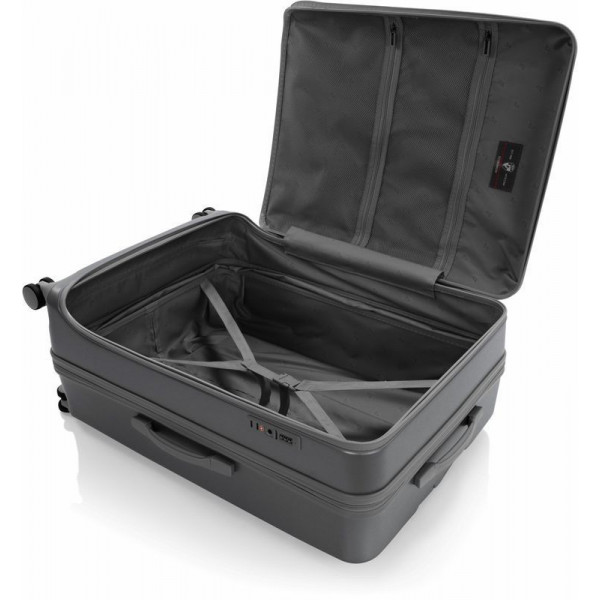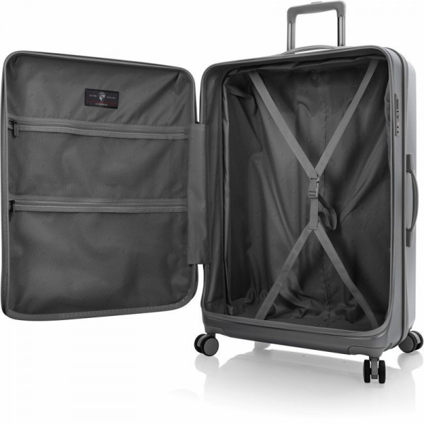 Валіза Heys EZ Fashion (L) Charcoal (10162-0047-30) на відміну від традиційної конструкції з розділенням 50/50, яка зустрічається в більшості жорстких валіз, відрізняється системою відкривання спереду. Це дає можливість пакування речей вглибину, використовуючи передній клапан. Виготовлена з полікарбонатного композиту: легкого, міцного та ударостійкого матеріалу. Зовнішня поверхня має легке тиснення, що запобігає появі подряпин й потертостей. Внутрішня частина повністю на підкладці. Основне відділення має два еластичні ремені для фіксації речей, що закріплюються застібкою. Також є дві сітчасті кишені для зберігання необхідних дрібниць. Є можливість збільшити корисний об єм валізи до 20% завдяки наявності розширювального клапана.