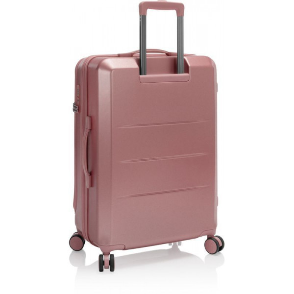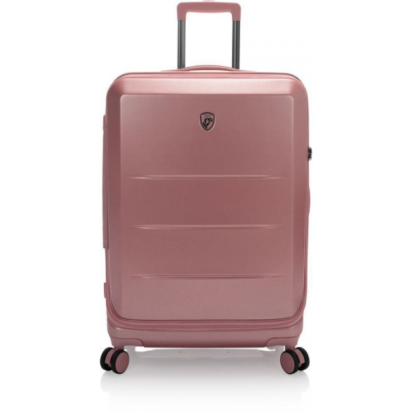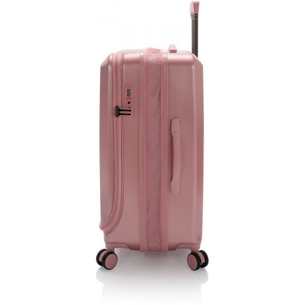 Валіза Heys EZ Fashion (M) Rose Gold (10162-0131-26) на відміну від традиційної конструкції з розділенням 50/50, яка зустрічається в більшості жорстких валіз, відрізняється системою відкривання спереду. Це дає можливість пакування речей вглибину, використовуючи передній клапан. Виготовлена з полікарбонатного композиту: легкого, міцного та ударостійкого матеріалу. Зовнішня поверхня має легке тиснення, що запобігає появі подряпин й потертостей. Внутрішня частина повністю на підкладці. Основне відділення має два еластичні ремені для фіксації речей, що закріплюються застібкою. Також є дві сітчасті кишені для зберігання необхідних дрібниць. Є можливість збільшити корисний об єм валізи до 20% завдяки наявності розширювального клапана.